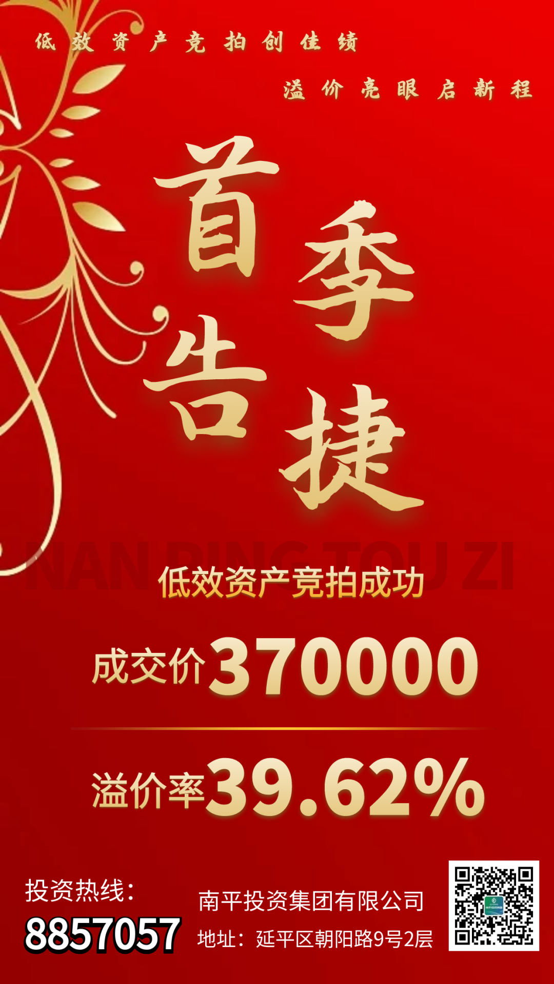 3月25日,投資集團通過南平市產(chǎn)權(quán)交易有限公司公開掛網(wǎng)招租的福建省南平市蔬菜食雜公司后谷倉庫,采用網(wǎng)絡(luò)競價模式,吸引了4名投資者的激烈角逐。經(jīng)過多輪競價,最終以37萬落槌,溢價率達39.62%,遠超預(yù)期。