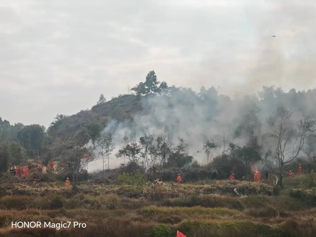 演練以模擬真實(shí)火災(zāi)情景為核心,通過(guò)“火場(chǎng)偵察——前期處置——高強(qiáng)度地表火撲打——上山火處置與緊急避險(xiǎn)——樹(shù)冠火處置——火場(chǎng)清理”六大連貫場(chǎng)景,完整還原火災(zāi)從初發(fā)到撲滅的全鏈條過(guò)程?,F(xiàn)場(chǎng)隊(duì)員靈活運(yùn)用油鋸、劈山機(jī)、風(fēng)力滅火機(jī)、滅火彈等裝備,并借助無(wú)人機(jī)勘察火情,高效開(kāi)展撲火行動(dòng)。整個(gè)過(guò)程中,各小組動(dòng)作規(guī)范、銜接緊密,既展現(xiàn)了對(duì)專(zhuān)業(yè)裝備的熟練運(yùn)用能力,也凸顯了跨單位協(xié)同作戰(zhàn)的默契,真正將“實(shí)戰(zhàn)化”要求落到了每一個(gè)環(huán)節(jié)。